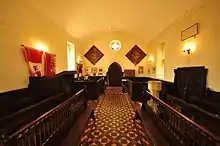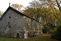 The chapel is a Grade II listed building.[3] It is a small building, rectangular in plan, built of local stone rubble with limestone ashlar details and a slate roof.