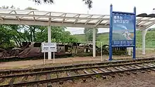 Near the station was a small yard where rail stock was stored or shunted before leaving for Wonsan, now in North Korea, along the former Gyeongwon Line. Behind the station building, there remains the wreck of a train bombed during the Korean War.[3] The train was used by the North Korean army, and was bombed by U.N. forces. "The windows of the train car are twisted toward the sky and the frame and the body of the train are crooked and rusty."[4]