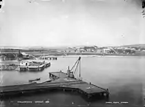 A timber T jetty designed and constructed by the NSW Department of Public Works was built in 1880 to increase the harbour's cargo handling capacity. At the same time, the harbour rail system was extended onto the Tee Jetty. The jetty was serviced by a derrick crane that was positioned on the outer edge of the jetty. The winch was powered by steam from a vertical boiler.[1]