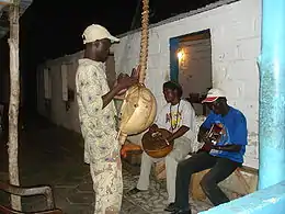 Wolof folk instruments include the xalam or halam,[2] which is a five-stringed lute, very important in Wolof folk music, the sabar drums, an ensemble of seven different drums, each differently tuned, and the hourglass talking drum called a tama. The Qadiriyyah Sufi order use tabla drums.