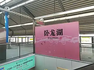 Wolonghu station (simplified Chinese: 卧龙湖站; traditional Chinese: 臥龍湖站; pinyin: Wòlónghú Zhàn; lit. 'Wolong Lake station') is a station on the suburban Line S7 of the Nanjing Metro. It commenced operations along with the rest of the line on 26 May 2018.[1]