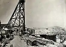 A newspaper, the Wonder Mining News, began delivering issues by August, and in September 1909 the town had its own post office.[3] By the fall of 1906 Wonder was going full-bore; it had a stage line connecting it to both Fairview and Fallon, and the usual assortment of stores, assay offices, freight depot, restaurants, hotels, boarding houses, and- of course- saloons. Several mining concerns were formed in Wonder, but the highest yield operation was the Nevada Wonder Mining Company. Backed by capital from eastern concerns, its operations produced the largest yields in silver and gold from the mines, and in 1913 a large mill was built onto the hillside just to the east of the town, were the ore was soon being processed.[2]
