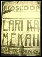 The brothers, under the banner Halimoen Film, began taking orders from several different studios, with Nelson, Joshua, and Othniel serving in various roles in the crew.[12] In 1929 the brothers worked with Batavia Motion Pictures to produce the Chinese-oriented bandit film Si Tjonat,[13] which was fairly well received.[lower-alpha 3][14] They also produced the action film Rampok Preanger independently, a film which may have been based on an American work and starred a Chinese actor and native keroncong singer,[15][16] and shot the drama Melati van Agam (Jasmine of Agam).[17]