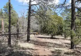 Ponderosa pine dominates the upper elevations of the reserve; pinyon pine and Utah juniper are more common at lower and dryer elevations.[1] Wildlife includes American black bear, elk, cougar, mule deer, whitetail deer, bald eagles, and golden eagles.[3] The reserve has views of the San Francisco Peaks to the north and the Verde Valley, including the red rocks of Sedona, to the east.[3]