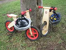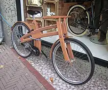 A wooden bicycle is a bicycle constructed either mostly, or entirely from wood.[1][2] Wood was the material used in the earliest bicycles, and is also used by modern builders, especially in balance bicycles for children.[3][4] The wood can be either solid or laminate.