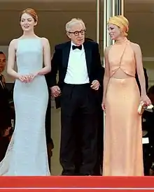 Allen's next film, Café Society, starred an ensemble cast, including Jesse Eisenberg, Kristen Stewart, and Blake Lively.[149] Bruce Willis was set to co-star, but was replaced by Steve Carell during filming.[150] The film is distributed by Amazon Studios, and opened the 2016 Cannes Film Festival on May 11, 2016, the third time Allen has opened the festival.[151] Peter Bradshaw of The Guardian gave the film a positive review, writing, "The film looks ravishing, with shots of New York which recall images in Allen's great work, Manhattan, but however wonderfully composed, there is something almost touristy in both them, and in his evocation of golden age Tinseltown, like his homages to Paris and Rome. Allen brings it all together in his closing moments which conjure something unexpectedly melancholy and shrewdly judged. It has entertainment and charm."[152]