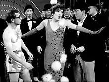 In 1966, Allen wrote an hourlong musical comedy television special for CBS, Gene Kelly in New York City.[66] It focused on Gene Kelly in a musical tour around Manhattan, dancing along such landmarks as Rockefeller Center, the Plaza Hotel and the Museum of Modern Art, which serve as backdrops for the show's production numbers.[67] Allen appeared in the special alongside Kelly. Guest stars included choreographer Gower Champion, British musical comedy star Tommy Steele, and singer Damita Jo DeBlanc.[68] In 1967, Allen hosted a TV special for NBC, Woody Allen Looks at 1967. It featured Liza Minnelli, who acted alongside Allen in some skits; Aretha Franklin, the musical guest; and conservative writer William F. Buckley, the featured guest.[69] In 1969, Allen hosted his first American special for CBS television, The Woody Allen Special, which included skits with Candice Bergen, a musical performance by the 5th Dimension, and an interview between Allen and Billy Graham.[70][71]