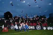 On their third attempt, they finished second in the qualifying round, and won the twelve-band final to be named Grade 3A World Champions on August 13.[13]