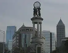 The World Athletes Monument, more commonly known as the Prince Charles Monument or Prince of Wales Monument,[1] is a monument located in Atlanta, Georgia, United States. The monument, dedicated to the 1996 Summer Olympics, is a gift from the Prince of Wales. The monument is located on Peachtree Street, at Pershing Point, in Midtown Atlanta.