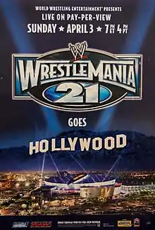 WrestleMania 21 (marketed as WrestleMania Goes Hollywood) was the 21st annual WrestleMania professional wrestling pay-per-view (PPV) event produced by World Wrestling Entertainment (WWE). It was held for wrestlers from the promotion's Raw and SmackDown! brand divisions. The event took place on April 3, 2005, at Staples Center in Los Angeles, California.