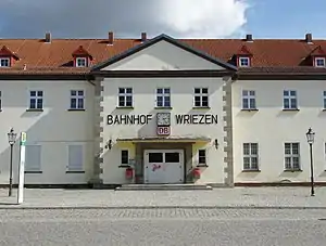 Wriezen station is a railway station in the municipality of Wriezen, located in the Märkisch-Oderland district in Brandenburg, Germany.
