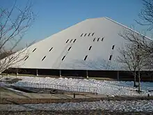 Wright College was originally located in a large building at 3400 N. Austin Avenue, in Chicago. The original Wright campus is now home to the Chicago Academy Elementary School, the Chicago Academy High School, and the Academy for Urban School Leadership's central office. Due to needs for additional space and more specialised facilities, in 1993 it moved to a 23-acre parcel at 4300 N. Narragansett Avenue, at a cost of $90 million.[4] The campus was designed by renowned Chicago-area architect Bertrand Goldberg[5] In 2013, the school began a $3.5 million project to renovate and install new HVAC systems in the Learning Resource Center, a pyramid and one of the campus' landmarks.[6]