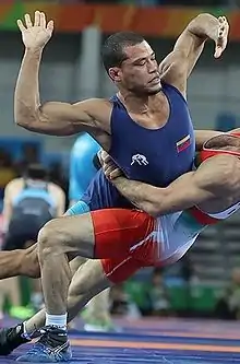 Wuileixis de Jesus Rivas Espinoza (born 27 August 1990 in Caracas, Capital District) is a Greco-Roman wrestler from Venezuela who competes in the welterweight category (under 66 kg).[1][3] At the 2012 Olympics he received a bye for the preliminary round of sixteen match, before losing to French wrestler and defending Olympic champion Steeve Guénot, who was able to score one point each in two straight periods, leaving Rivas without a single point.[4] At the 2016 Rio Games he was also eliminated in the first bout, against Omid Norouzi who was the defending champion from London.[2][1]