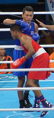 Wuttichai Masuk (Thai: จ่าอากาศโท วุฒิชัย มาสุข; born 16 March 1990 at Buriram Province), is a Thai boxer who competes in the light welterweight division. He won the gold medal at the 2009 Asian Amateur Boxing Championships after defeating Hurshid Tojibaev of Uzbekistan.[2] He also won gold medal of the Boxing at the 2014 Asian Games.[3][4]