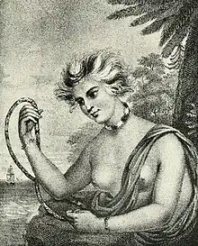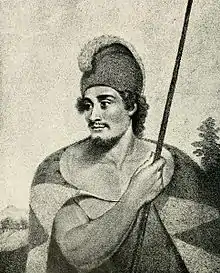 The Barkleys intended to take her back to Europe but Wynee requested to return home and so she was left in the Portuguese colony of Macao.[3] At Canton, she arranged to return to Hawaii aboard Captain John Meares's ship Felice Adventurero with fellow Hawaiian "Tianna" (Kaʻiana – also spelled Tyaana & Tyanna), a member of the aliʻi (high chief) class from the island of Kauai.[4] Traveling with them were two other Hawaiians: a stout man and a boy from Maui but they are not specifically named. She died of illness on the voyage home on February 5, 1788. Tianna, who remained by her bedside caring for her, contracted a fever as well. He reportedly became seriously distraught upon learning of her death, although he would recover and arrive back home. Wynee bequeathed to him some trade articles she had acquired and asked him to deliver her remaining possessions to her father and mother; these items included mirrors, porcelain, Western clothing and other items she collected during her travel. She was buried at sea.[3][5][6]