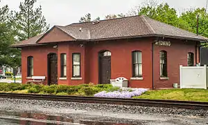 Wyoming is a historic railway station located at Wyoming, Kent County, Delaware. It was built by the Delaware Railroad in 1872, and is a one-story, five-bay, brick, Italianate-style building. It has a low hipped roof with shallow eaves, round-headed doorways and windows, and a projecting bow-front window.[2] The station has been renovated for use as town offices.