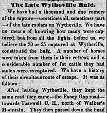 - 1 2 3 4 "Yankee Raid Upon Wytheville". Staunton Spectator. 1863-07-28. p. 2.