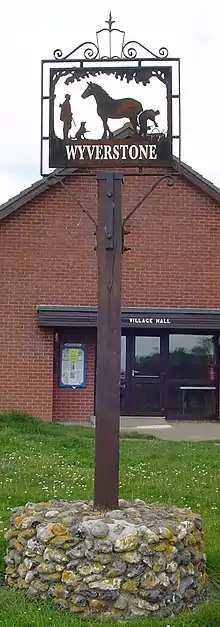 The village sign as shown in the photograph was made by Brian Brookes from Wyverstone.