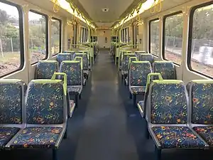 As part of its 2009 franchise agreement, Metro Trains Melbourne was required to modify the 3+2 seating layout in all original X'Trapolis 100s to have 2+2 seating, providing efficiency in passenger flow and more standing room. Later orders of X'Trapolis 100s were delivered with this modified layout.[7][8]
