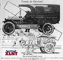 1915 advertisement for XLNT Foods showing a motorized delivery wagon