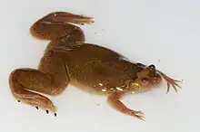 Xenopus parafraseri, the upland clawed frog, is a species of frog endemic to Gabon, Congo and Cameroon in Central and West Africa. It's a Least Concern species on the IUCN Red List, although populations are declining. It lives in forests and wetlands, and in elevations of up to 420 to 715 m (1,378 to 2,346 ft).[2]