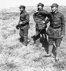 Between 1930 and 1933, he was appointed as first to command of the Red Army's Fifth Division, then its Eighth Army, and later Sixth Army Group, fighting in many battles resisting the Nationalist's Encirclement Campaigns. In August 1934, he led the Sixth Army Group out west of the Jiangxi Soviet as pathfinders for what was to become the Long March. Among his unit was future major general Li Zhen.[2] The Sixth Corps subsequently joined forces under He Long to become the Second Front Army. They co-founded Xiang-E-Chuan-Qian Soviet District. In July 1936, he was appointed to deputy command of the Second Front Army.