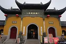 The temple traces its origins to the former "Xilin Vihara" (西林精舍), founded by Hu Zengchu (胡曾初) in 872, in the ruling of Yizong Emperor of the Tang dynasty (618–907).[2] Originally known as "Jiedai Temple" (接待院; 'Reception Temple') in the Southern Song dynasty (1127–1279), and later renamed "Ting'en Temple" (廷恩寺) and "Chong'en Temple" (崇恩寺), Yingzong Emperor of Ming dynasty (1368–1644) inscribed and honored the name "Xilin Chan Temple of Great Ming" in the mid-15th century.[3] The temple was destroyed by fire during the Mongolian invasion of the 13th century, and was restored and reconstructed in 1387, at the dawn of Ming dynasty.[3]