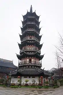 - ↑ Shi Wuduan (释悟端) (2015). 寺迹延绵古梵刹 记松江西林禅寺圆应塔. eastday.com (in Chinese). Retrieved 15 October 2019.