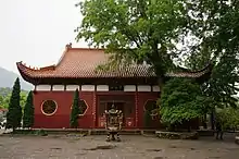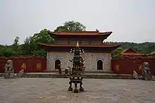 Xilin Temple was originally built in 366 by an official named Tao Fan (陶范), during the Eastern Jin dynasty (317–420).[1] In the Tang dynasty (618–907), Emperor Xuanzong issued the decree rebuilding the temple.[1] In the Song dynasty (960–1179), Emperor Taizong inscribed and honored the name "Qianming Chan Temple" (乾明禅寺). It became one of the Three Famous Buddhist Temples on Mount Lu, alongside Donglin Temple and Dalin Temple (大林寺). The temple had reached unprecedented heyday during that time.[1] Since the Yuan dynasty (1127–1368), over the course of 700 years, the temple was destroyed and rebuilt many times. Xilin Temple was devastated by the Mongolian invasion in 1292 and rebuilt in 1381, at the dawn of Ming dynasty (1368–1644).[1] In 1854, during the reign of Xianfeng Emperor of the Qing dynasty (1644–1911), Xilin Temple was completely damaged during the Taiping Rebellion.[1] Seven years later, monk Lusong (麓松) restored the temple.[1]