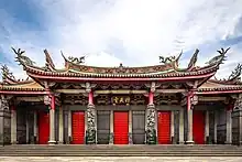 Hsing-tian Temple (traditional Chinese: 行天宮; simplified Chinese: 行天宫; pinyin: Xíngtiān Gōng; Wade–Giles: Hsing2-t'ian1 Kong1; Pe̍h-ōe-jī: Hêng-thian-kiong; also Xingtian Temple, Xingtian Gong or Hsing Tian Kong) is a popular temple in Zhongshan District, Taipei, Taiwan. This temple is devoted to Lord Guan, the Patron Deity of businessmen, military personnel and policeman. This temple is situated on a street corner near the center of the city. Sculptures of dragons feature prominently in this temple's design. It covers over 7,000 square meters.[2]
