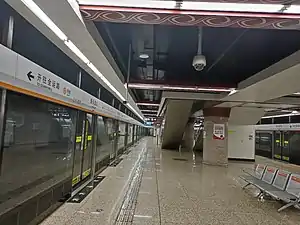 Xinleyizhi (Chinese: 新乐遗址站; pinyin: Xīnyuèyízhǐ Zhàn) is a station on Line 2 of the Shenyang Metro.[1] The station opened on 30 December 2011.[2] This station locates to the west of the Qing Zhao Mausoleum and Beiling Park, also known as Zhaoling or Beiling, and close to the Museum of the Xinle Civilization.