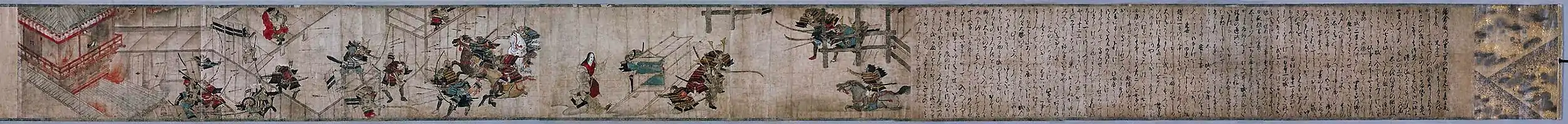 The Yūki Kassen Ekotoba (結城合戦絵詞) is a 15th-century scroll containing both text and illustrations describing Ashikaga Mochiuji's seppuku and Yūki Ujitomo's rebellion against shōgun Ashikaga Yoshinori (the Yūki War). It is 28.80 cm long, 378.20 cm wide. The scroll is an Important Cultural Property.