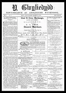 Y Gwyliedydd (established by the Wesleyan Church in 1877) was a weekly Welsh language newspaper, distributed in districts of North and South Wales, and the main cities of England. It contained local and general news.