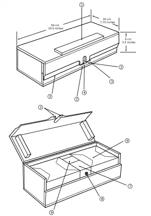 The mine consists of a rectangular wooden box with a hinged lid that overlaps the front of the mine. A slot in the hinged lid's side through which an MUV pull fuse is placed. A wooden pressure bar is sometimes used on the edge of the lid above the slot. A nail is placed horizontally through the loop of the MUV fuse's striker retaining pin and two loops on the bottom of the lid's slot.