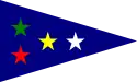 The burgee of the club consists of a blue triangle with four stars inside: green, red, yellow, white.