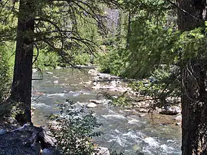 The Yankee Fork Salmon River is a 28-mile (45 km)[2] tributary of the Salmon River in Custer County, Idaho in the United States. It originates in the Salmon River Mountains, in the Salmon-Challis National Forest, and flows south to its confluence at Sunbeam, about 10 miles (16 km) east of Stanley.