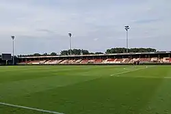 Yanmar Stadion (formerly Mitsubishi Forkliftstadion and Almere City Stadion) is a multi-purpose stadium in Almere, Netherlands. The stadium primarily hosts association football matches and is the home ground of Almere City FC.[4] The stadium was built in 2005 with a capacity of 3,000 spectators. In January 2020, the club completed a new grandstand, increasing the capacity to 4,501.[5] The grandstand affords covered passages to the main club building, as well as to the new club offices which were completed in spring of 2020.[6]