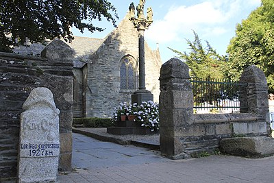 Larhantec executed this Calvary in 1866. It is known as "La croix de Traon-Meur" and is 7 metres in height. A plaque makes reference to the mission of 1866. The calvary is located in the cemetery.[14][15][16][17]