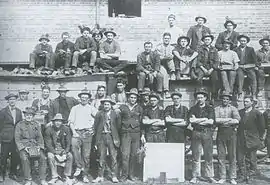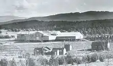 In 1922, a workers' tent camp was erected on the eastern side of Stirling Ridge to house the men working on the main intercepting sewer. The following year saw the start of the construction of 62 small, four-room, unlined timber cottages, to be used as housing for the married tradesmen involved in the construction of the provisional Parliament House. Other camps were established at the eastern end of Stirling Park on the hills opposite modern Lotus Bay. The first of these was contractor John Howie's settlement (1922–1930), consisting of 25 timber cottages for his married men and timber barracks (Hostel Camp) for his single men. Two other single men's tent camps were established nearby—Old Tradesmen's Camp (1923–1927) and No 1 Labourers Camp (1924–1927). The men from Howie's worked on the Hotel Canberra and the others on the construction of the provisional Parliament House and nearby administrative buildings.[21] The Stirling Park camps were known as Westlake to their new inhabitants, and previously "Gura Bung Dhaura" (stony ground) to the local Aboriginal people.[22] In 1925, the population of this temporary suburb was 700.[23] This represented roughly one-fifth of the total population of the Federal Capital Territory at the time.[21] In 1956, the Department of Interior decided to clear the settlement so that embassies could be built.[24] In 1960, the member of parliament for the ACT, Jim Fraser, described Westlake as one of two "hidden valleys of disgrace, which are never shown to tourists and are seen by visitors only by chance".[25]