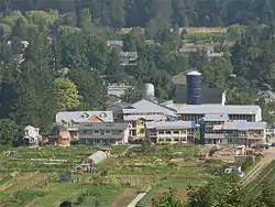 The Yarrow Ecovillage is an intentional community in Yarrow, British Columbia, Canada. Yarrow is a settlement of 3,000 population within the municipal boundaries of Chilliwack, British Columbia. The Ecovillage is a member-designed community that aims to achieve a more socially, ecologically and economically sustainable way of life. The Ecovillage's master plan for the 10-hectare (25-acre) former dairy farm, foresaw three main legal entities: An 8-hectare (20-acre) organic farm, a 31-unit multigenerational cohousing community (later increased to 33 units), and a mixed-use development with just under 2800 m2 (30,000 sf) of commercial space, a 17-unit senior cohousing community and a learning centre.[1]