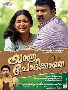 Yathra Chodikkathe (Malayalam: യാത്ര ചോദിക്കാതെ, meaning Without Bidding Farewell) is a 2016 Malayalam film directed by Aneesh Varma, starring Kalabhavan Mani and Reena Basheer.[2] This was Kalabhavan Mani's last movie.[3] The film was released posthumously on 8 April 2016 and met with negative reviews.[4] Yathra Chodikkathe had a fifteen day theatrical run. The film was released after Kalabhavan Mani's death.[5]