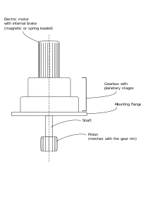 The gear-rims with teeth on the outer surface have the advantage of higher reduction ratios in combination with the pinions as well as reduced machining costs over the gear-rims with inner teeth.