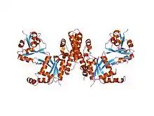 - ↑ Teplyakov A, Obmolova G, Chu SY, Toedt J, Eisenstein E, Howard AJ, Gilliland GL (July 2003). "Crystal structure of the YchF protein reveals binding sites for GTP and nucleic acid". J. Bacteriol. 185 (14): 4031–7. doi:10.1128/jb.185.14.4031-4037.2003. PMC 164861. PMID 12837776.