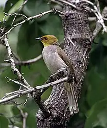 - ↑ BirdLife International (2016). "Pycnonotus xantholaemus". IUCN Red List of Threatened Species. 2016: e.T22712719A94345114. doi:10.2305/IUCN.UK.2016-3.RLTS.T22712719A94345114.en. Retrieved 13 November 2021.
