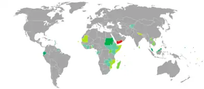 In 2016, Yemeni citizens had visa-free or visa-on-arrival access to 38 countries and territories. This ranked the Yemeni passport 97th worldwide according to the Visa Restrictions Index. However, as of 2019, it has dropped to the 104th spot.[3]