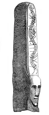 Stele Uybat-I. The stele itself dates back to the Okunev culture, 2nd millennium BCE.[7][8]