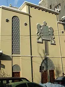 The synagogue is located on 9 Tache Ionescu Street, near Piaţa Amzei and Piața Romană metro station. It was built in 1827 and renovated in 2007. A Moorish architectural influence can be observed on the facade. Bas-reliefs decorate the tympanums above the frontal doors and the upper part of the facade.