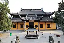 • Tiantong Scenic Spot (天童风景名胜区) mainly consists of Tiantong Temple and Tiantong National Forest Park. Tiantong Temple is one of the most important Chan Buddhist temples; Sōtō began its formation there under Rujing. It was originally built during the Western Jin dynasty around 300 AD (some date it between 265 and 316). It ranks second among the five sacred Chinese Zen Buddhist mountains. A very large complex of buildings, its former total of 999 rooms has now shrunk to 730 today, arranged in twenty groups of buildings rising up the mountain slope.