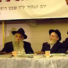 Rabbi Yisroel Friedman (right) seated on the dais along with Rabbi Yoel Kahn (left)