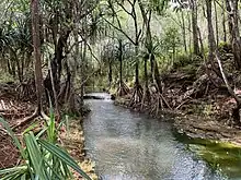 The Ylig River is one of the longest rivers in the United States territory of Guam. Rising close to the west coast some three kilometres north of Apra Heights, it traverses the island, flowing into the sea in the central east coast, south of the town of Yona. The course of this river roughly parallels that of the Pago River, which lies around five kilometres to the north.[1] It runs about 6.83 miles in length, and has a watershed area of 16.08 square miles.[2] The Ylig has two tributaries, the Tarzan and the Manengon rivers.[2]